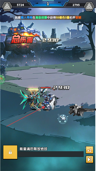2、战斗中操控机甲角色攻击敌方单位,积累伤害数值。