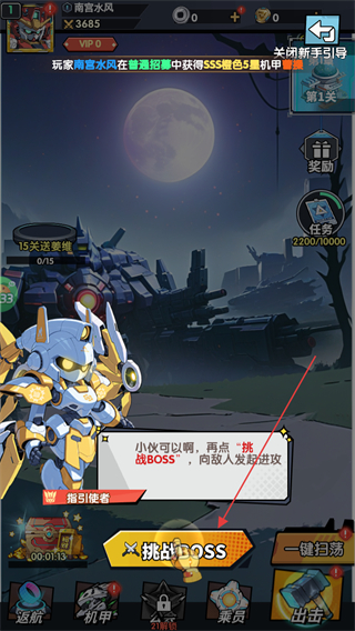 1、在主界面点击挑战BOSS按钮,进入BOSS战斗关卡。