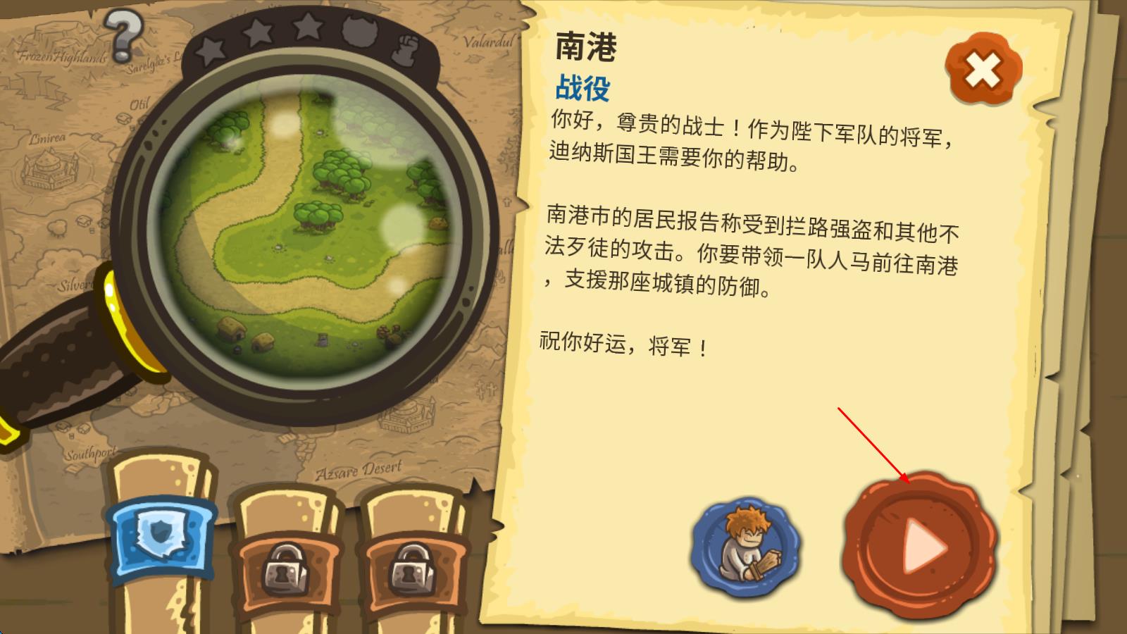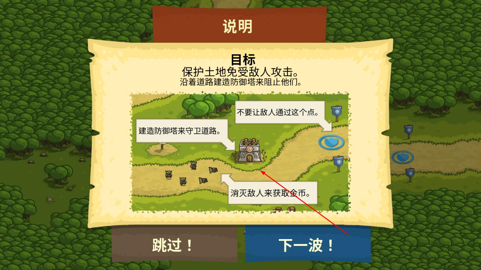 1、进入游戏后,先观察关卡地图,确认敌人进攻路线与可建造区域,用初始金币搭建基础防御塔(如弓箭塔),开启首波防御。