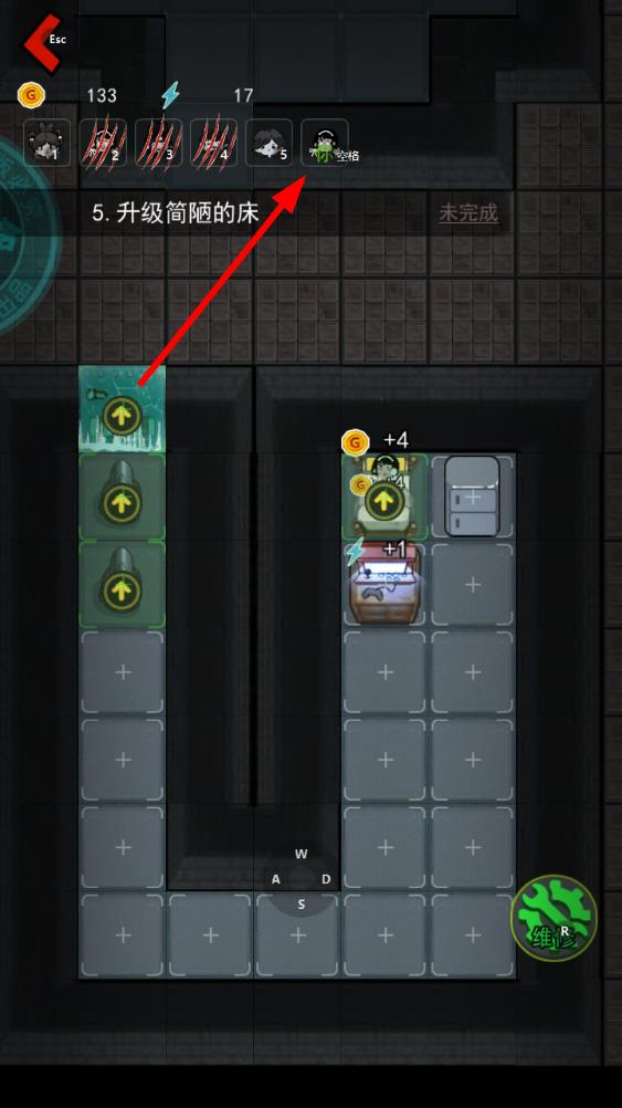 2、当金币足够时,升级床铺获得更多金币,升级房门来增强防御能力,抵御猛鬼的攻击,合理规划建造炮台等防御设施攻击前来的猛鬼消耗其血量。