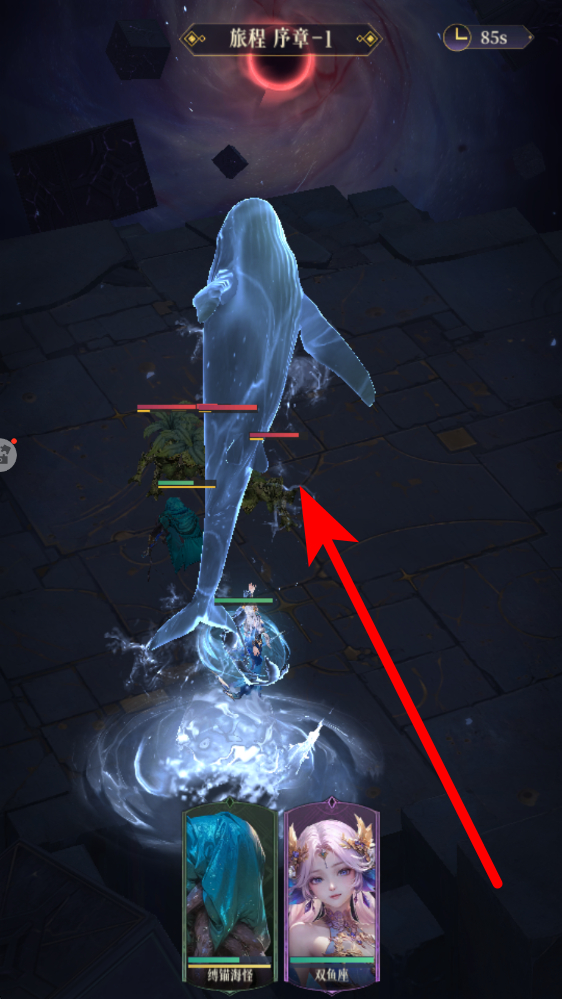 3、角色可释放强力技能,如会出现巨大的鲸鱼形态技能特效,对敌人造成伤害,玩家需根据战场情况,合理选择技能释放,应对敌人进攻。