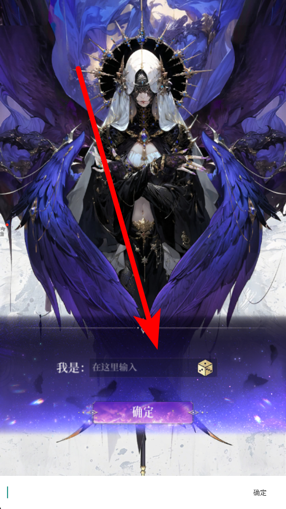 1、首先角色创建,找到标有我是在这里输入的输入框,输入想要设定的身份内容,然后点击确定按钮,完成身份设定,正式开启游戏之旅。