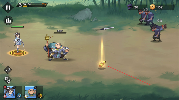 4、拾取敌方掉落道具,持续作战,获取金币1152与击杀数28,推进战斗进度。