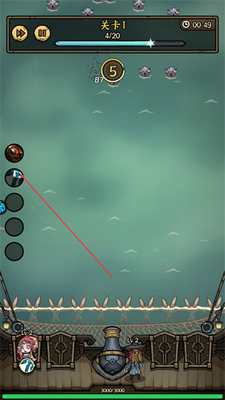 4、肉鸽随机冒险机制,每次出海的航线、怪物波次、道具掉落均为随机生成,即便重复挑战也能收获不同体验,同时支持通过击败怪物获取材料升级战船,提升生存与战斗能力。