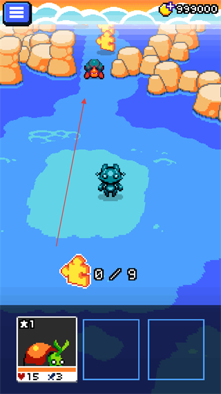 2、遭遇火焰龟等敌人,发起攻击,消耗其血量。