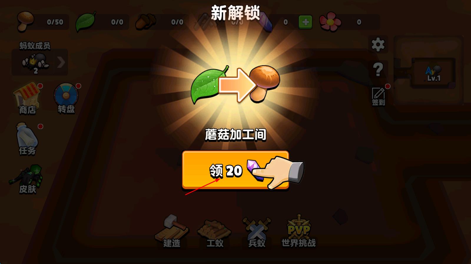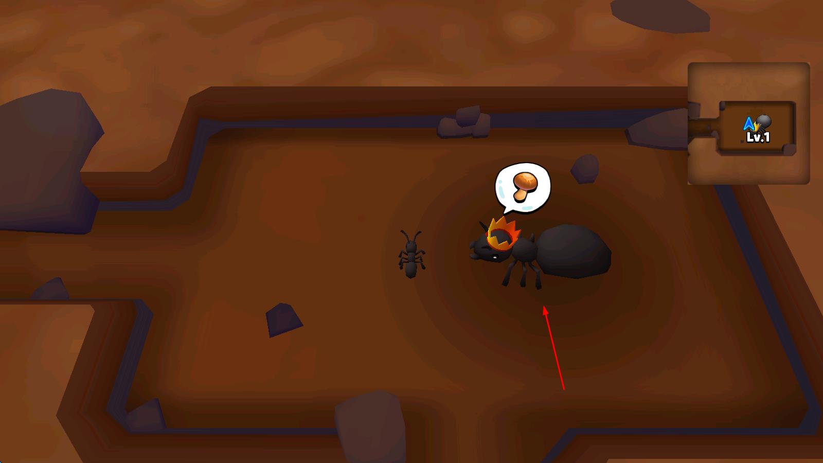 1、进入蚂蚁进化3D后,先熟悉蚂蚁的基础操作,操控初始蚂蚁在周边区域探索,寻找并收集虫子、果实等基础食物,为蚁群初期生存储备资源。