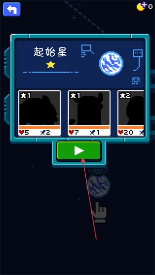 1、选择起始星,点击绿色开始按钮,进入游戏。