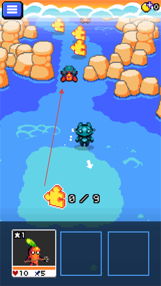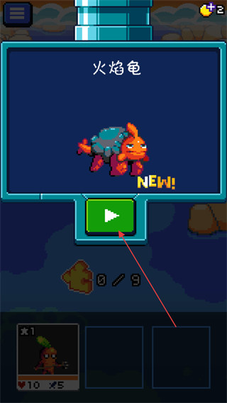 4、成功捕获新生物如火焰龟,点击绿色按钮,将其加入队伍,继续探索。