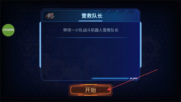 1、在营救队长关卡界面,点击开始,开启带领战斗机器人营救队长的任务。