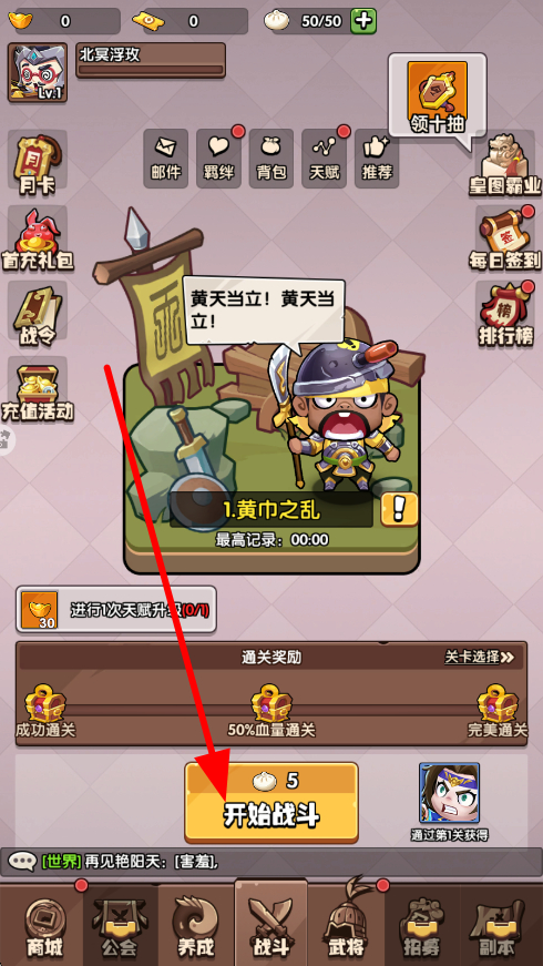 1、玩家可以在主界面,有不同的关卡可供选择,选好关卡后,点击开始战斗按钮,即可进入战斗场景,开启与敌人的对战。