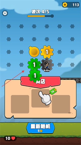 1、花费金币购买角色齿轮进行放置,只能放置在黄色齿轮边上。