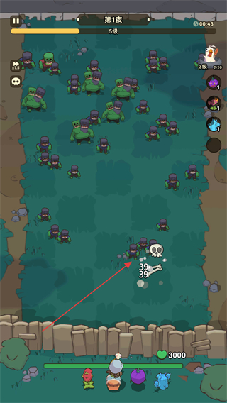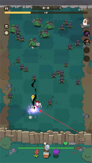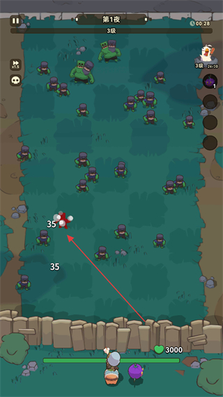 1、在第1夜战斗中,操控角色攻击僵尸,造成35点伤害,同时躲避巨型僵尸的攻击。