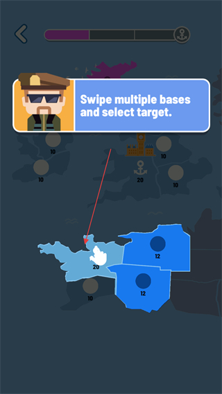 4、同时滑动多个基地,集中兵力攻击目标,占领地图上所有基地即可通关。