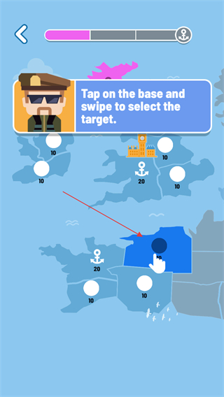 2、点击己方基地,滑动屏幕指向目标基地,派遣部队前往占领。