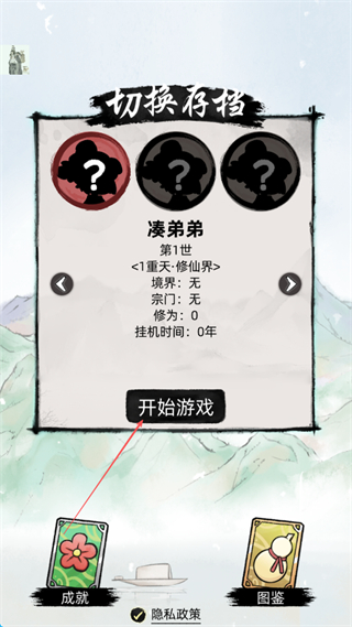 1、在切换存档界面选择存档,点击开始游戏修仙流程。