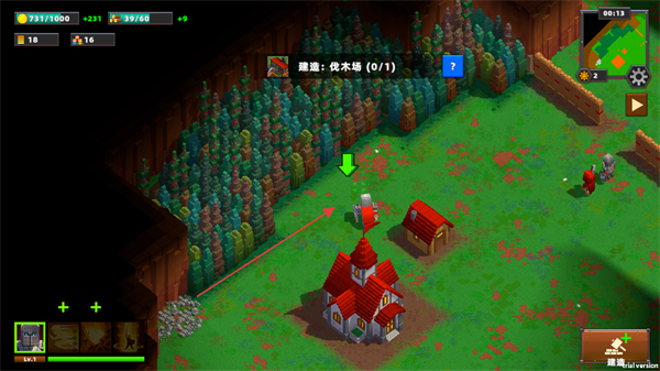 4、在指定位置建造伐木场,完成基础建筑布置,推进城堡发展流程。