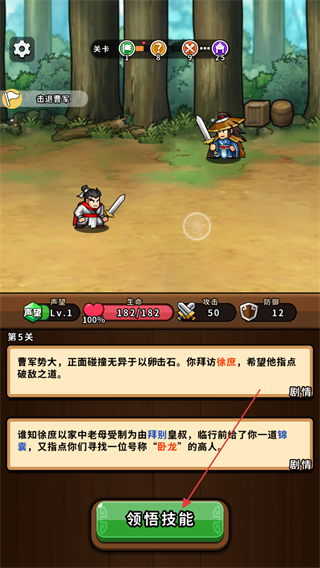 3、第5关点击领悟技能,解锁新技能,获取对战助力。