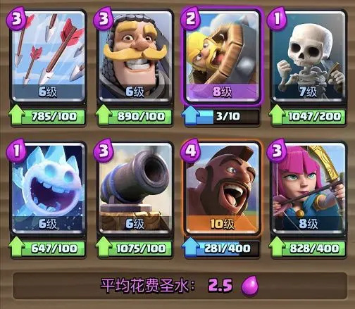 非常经典的卡组了,毕竟现在使用加农炮的玩家比较少,虽然对空能力有点弱,但是配合弓箭手以及冰淇凌其实还是很好化解敌方空中单位的。