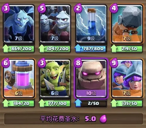 这一套卡组的构成是超级肉的石头人搭配上3个火枪手,这个卡组可以说是非常的灵活多变,玩家可以让石头人去当前排肉坦,然后配合上亡灵军团,快速推进,当然了也可以使用三个火枪手分两路,然后在桥头释放野蛮人攻城槌来达到双路突袭的效果,不过这一套卡组也有一个缺点,就是花费的圣水高了点。