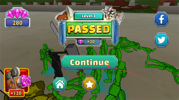 4、通关Level1后点击Continue,继续下一关游戏。