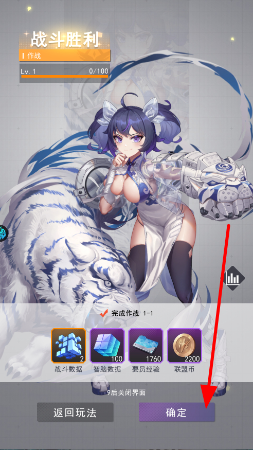 4、战斗胜利后,会获得战斗数据、智脑数据、要员经验、联盟币等奖励,点击确定,即可领取这些奖励,提升角色或解锁新内容等。