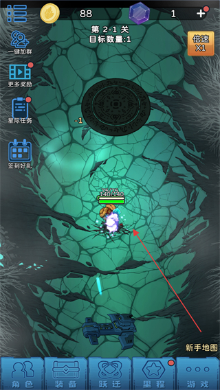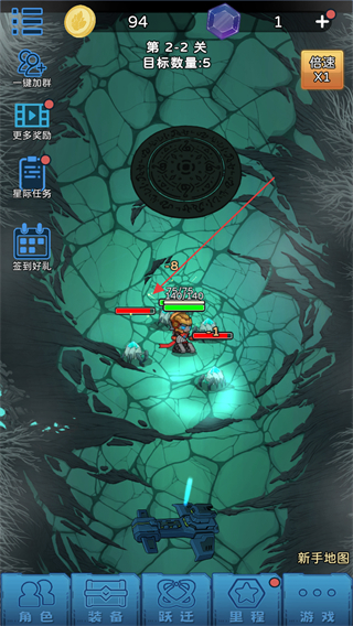 4、推进到2.2关,继续通过队员的自动战斗清理目标,积累金币与资源。