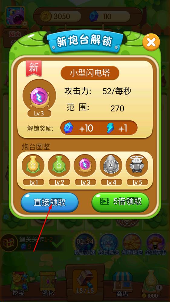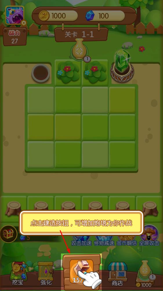 1、进入打爆怪兽,先领取登录赠送的炮塔角色,根据初始关卡提示,将基础炮台放置在怪物进攻路径旁,开启首次怪兽防御作战。