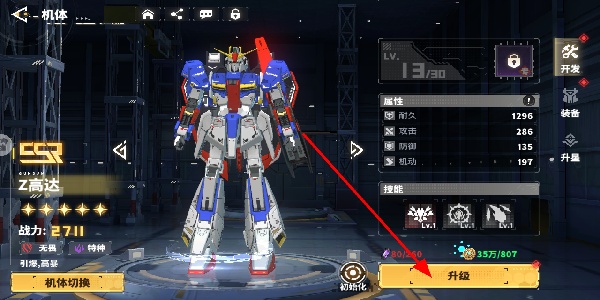 4、升级我方机甲,全面提升其性能,让机甲在战斗中更具强大威力,顺利通过各类高难度战斗关卡。