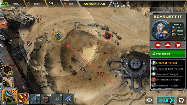 1、在Wave1/4阶段,部署攻击单位至路径旁,选择NearestTarget模式,自动攻击靠近的敌方单位。