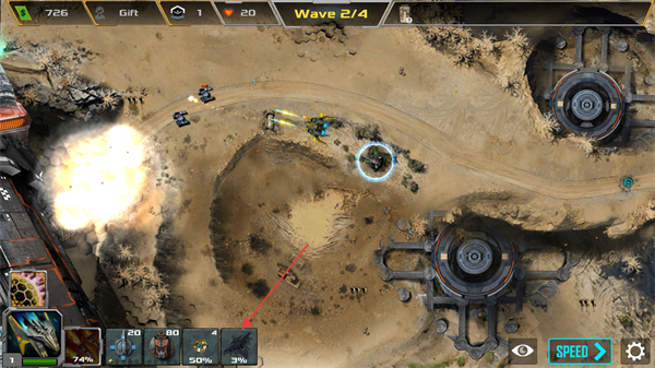 3、进入Wave2/4阶段,升级现有攻击单位,提升其攻击力,应对更强的敌方部队。