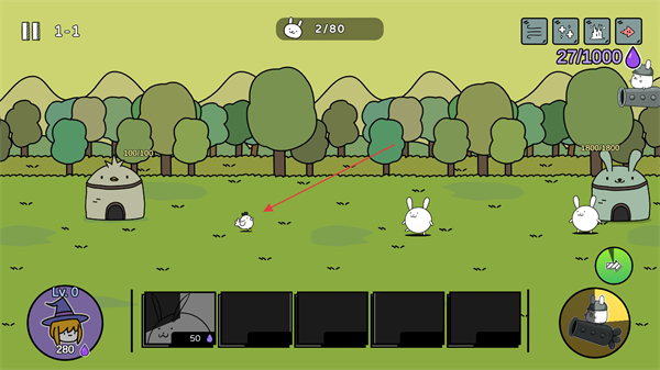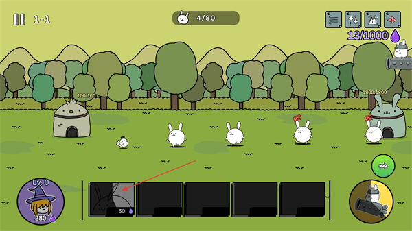 4、击败敌人后己方兔子数量增加,持续战斗积累进度通关关卡。