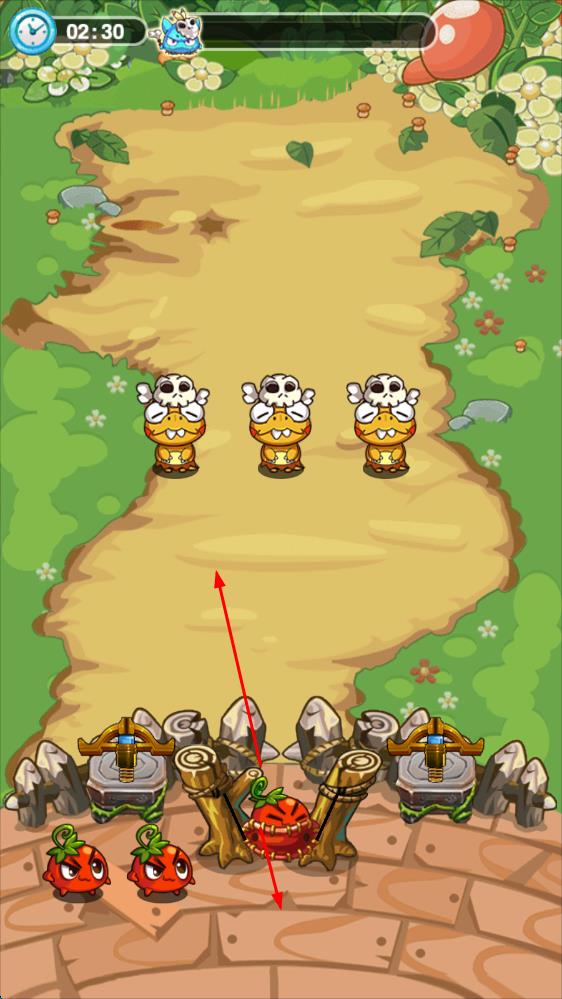1、进入游戏后,先熟悉弹射操作逻辑,选择初始蔬菜角色,在首个关卡中瞄准来袭的恐龙,通过弹射蔬菜发起攻击,感受全新塔防玩法的乐趣。