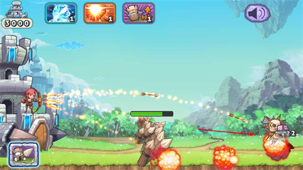 3、进入游戏后,操控角色发射弓箭,攻击前来的怪物。