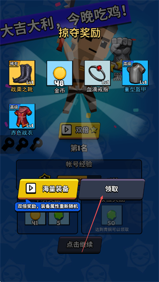 4、获得第1名后,领取战票之靴金币等掠夺奖励,点击领取按钮,继续游戏。
