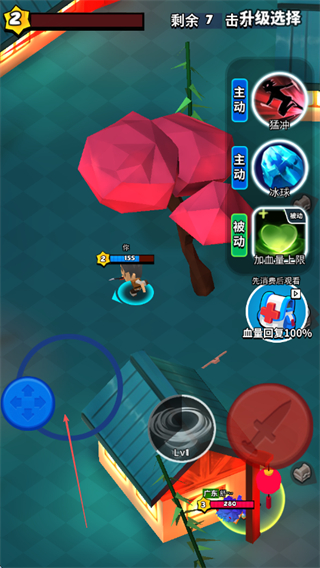 1、战斗中选择猛冲,冰球等主动技能或加血上限被动技能,提升战力,应对敌人。