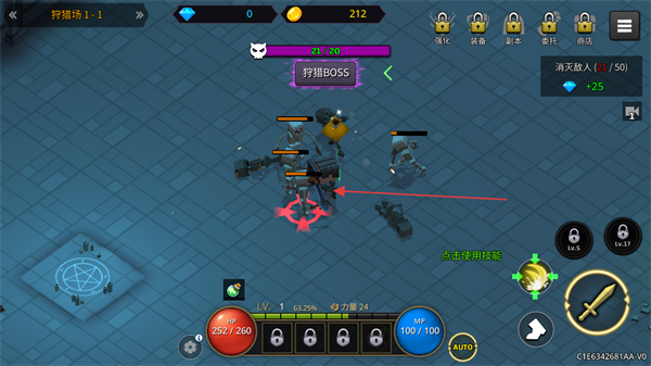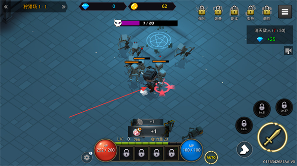 1、在狩猎场1-1中,操控角色攻击敌人,通过不断击杀敌人积累金币和经验,提升等级。