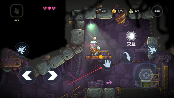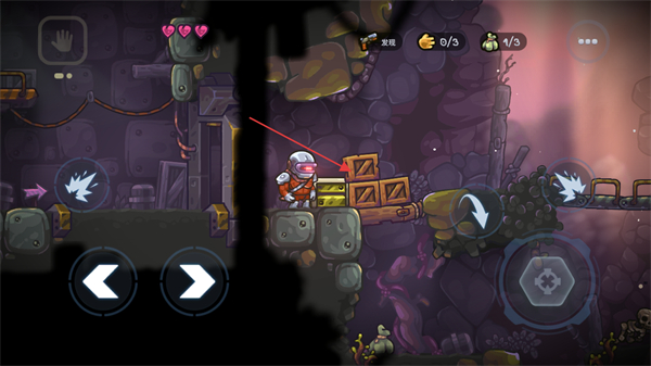 2、移动角色至新区域,找到带箱子的平台,点击右侧箭头可切换交互功能。