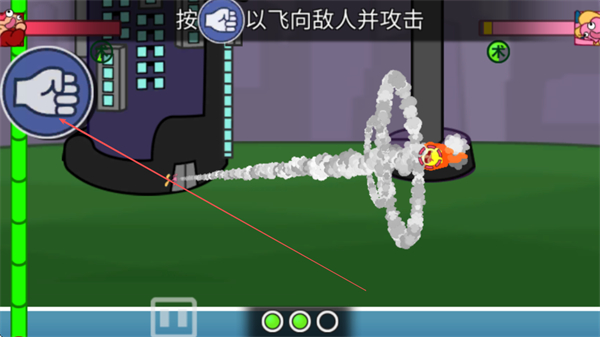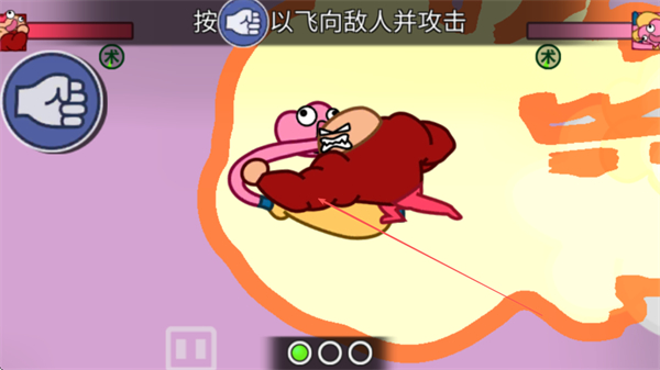 4、不断点击拳头按钮,操控角色反复飞向敌人攻击,争取击败对手,完成关卡。