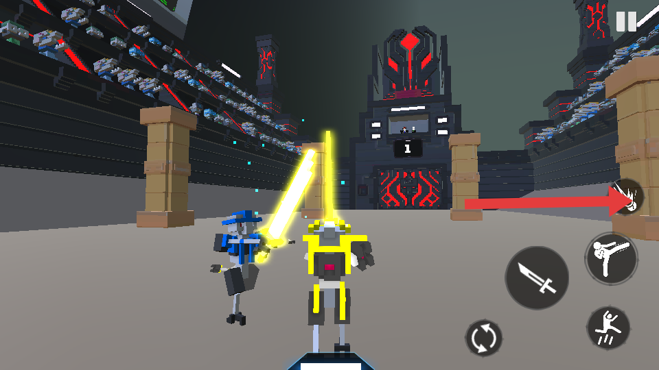 机器人角斗场作为Steam热门作品的手机移植版,以像素艺术风格呈现机器人格斗盛宴,凭借独特对战主题与多人联机功能吸引玩家,操控机器人在快节奏对战中把握移动、时机与位置,通过刀剑交锋、技能释放展开激烈对抗,搭配轻松搞笑的解说与放克风表情动作,辅以体素肢解的震撼视觉效果。