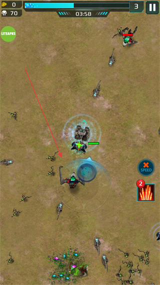 2、在战场中移动,躲避敌方小怪,持续消灭敌人,扩大优势。