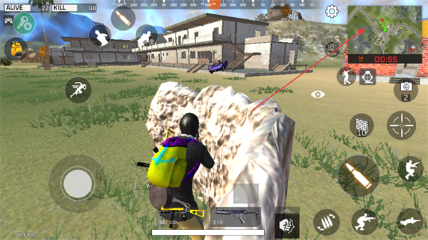 2、利用岩石作为掩体,观察周围环境,向建筑区域推进。