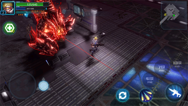 1、释放技能攻击集群僵尸,获取7级经验值提升至等级2,增强战斗力,持续清理周围敌人。