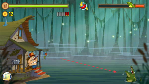 2、持续射击鳄鱼,使其血量减少,同时注意自身弹药数量。