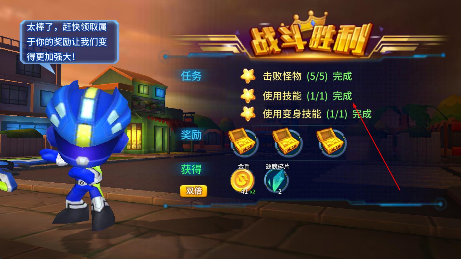 3、当成功击败关卡中的敌人,化解“鼠王爷”制造的灾难危机,即可推进剧情,解锁更多巨神战机与角色技能,继续守护人类的使命。