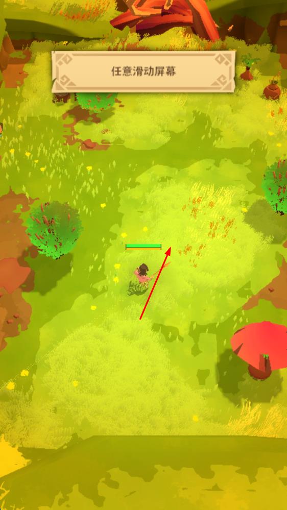 1、进入游戏场景,按提示任意滑动屏幕,操控角色在草地环境移动,熟悉基础操作方式 。
