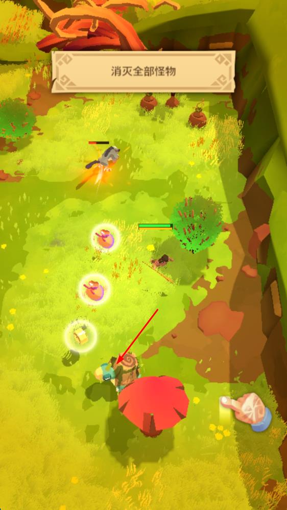 2、接取“消灭全部怪物”任务,移动角色靠近怪物,触发战斗,通过操作击败场景内所有怪物 。
