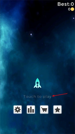 1、点击界面显示的Touchtoplay按钮,启动游戏,控制火箭开始向上移动。