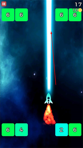 2、操控火箭朝着带有数字的方块方向移动,让火箭碰撞这些方块,完成数字消除。