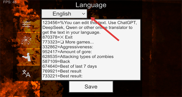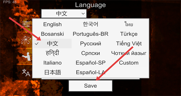 4、选择完成后,点击Save按钮,保存语言设置,完成语言修改操作。