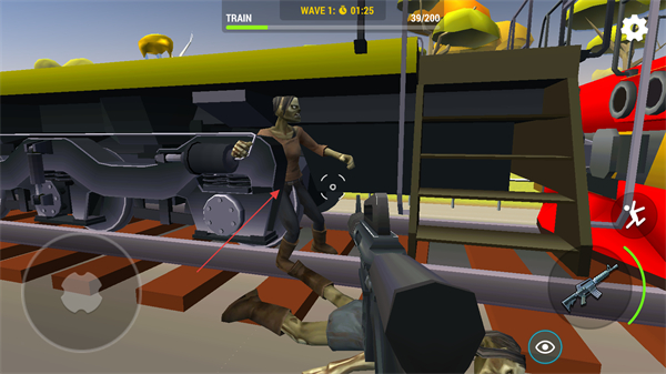 1、使用枪械攻击靠近的僵尸,清理列车旁的敌人,推进关卡进度。